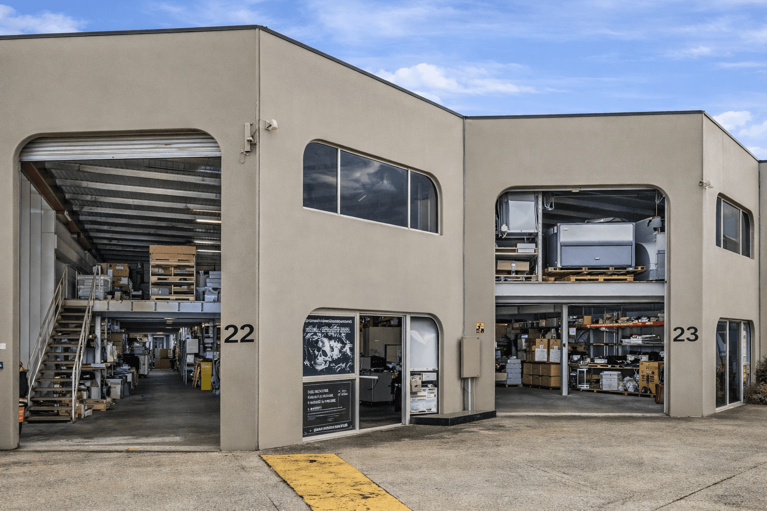Small warehouses / trade units (parking, roller door access, simple layout)